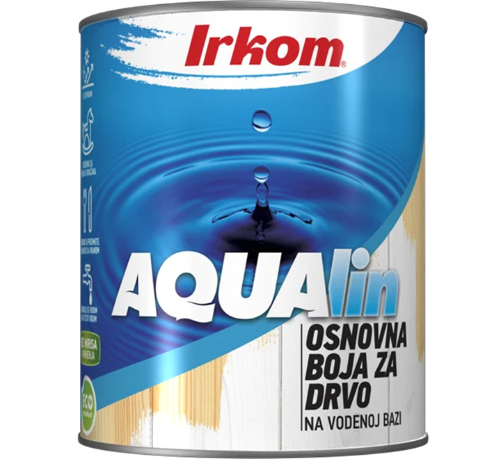 Irkom Aqualin osnovna boja za drvo je ekološki prajmer na vodenoj bazi namenjen pripremi drvenih površina pre nanošenja završnih emajla. Služi za popunjavanje pora drveta i obezbeđuje odlično prijanjanje sledećeg sloja boje.