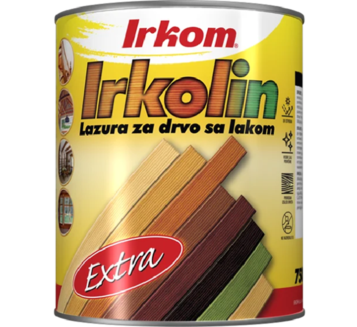 IRKOLIN EXTRA  je lazurni premaz sa lakom napravljen na bazi sintetičkih smola, svetlo stabilnih pigmenata, fungicidno-insekticidnih aditiva i odgovarajućih rastvarača. Namenjen je dekorativnoj zaštiti drveta, u eksterijeru i enterijeru (prozori, vrata, ograde, lamperija). Prodire u drvo, štiti ga i vrši njegovo nijansiranje, a u odnosu na Irkolin Classic, odlikuje se pojačanim sjajem jer poseduje lak u sebi. Ne koristi se kao podloga za Irkolin Gold jer ima veću gustinu od Classic-a  i stvara deblji film na površini drveta. Zbog velikog učešća smole i sjaja, nema mogućnost da prati kretanje drveta koje se širi i skuplja pod uticajem atmosferskih uslova,  tako da je bolji za primenu u enterijeru. Irkolin Extra pravi čvrst, krut premaz koji se nanosi četkom, krznenim valjkom ili špricem. U enterijeru se preporučuje nanošenje u 1-2 sloja, a u eksterijeru 2-3 sloja. Ukoliko se nanosi većI broj slojeva od preporučenog dolazi do gubitka transparentnosti (tekstura i godovi drveta biće slabije vidljivi).