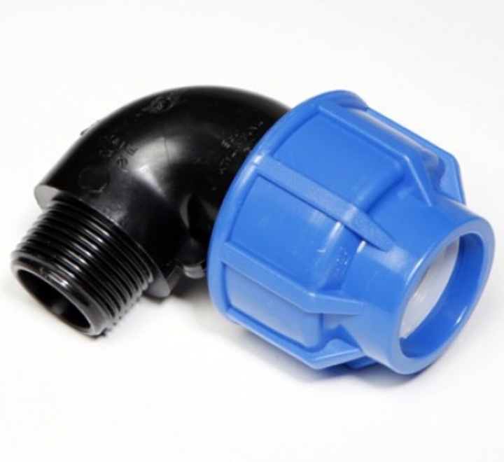 Ovaj tip fitinga se koristi za pouzdano spajanje polietilenskih (PE/okiten) cevi pod uglom od 90 stepeni sa drugim elementima koji imaju unutrašnji navoj, poput ventila, slavina ili metalnih cevi.