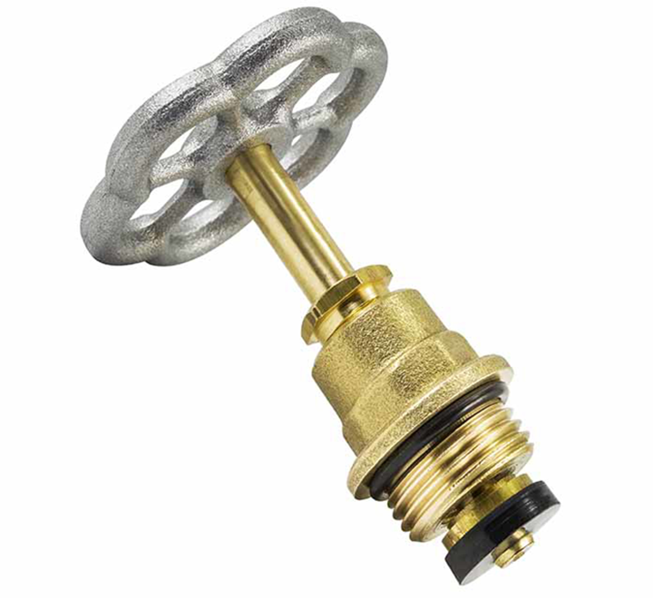 - Komponente: Sadrži navoj za uvrtanje u telo ventila, stablo (vreteno), gumicu za zaptivanje i ručku u obliku točkića.